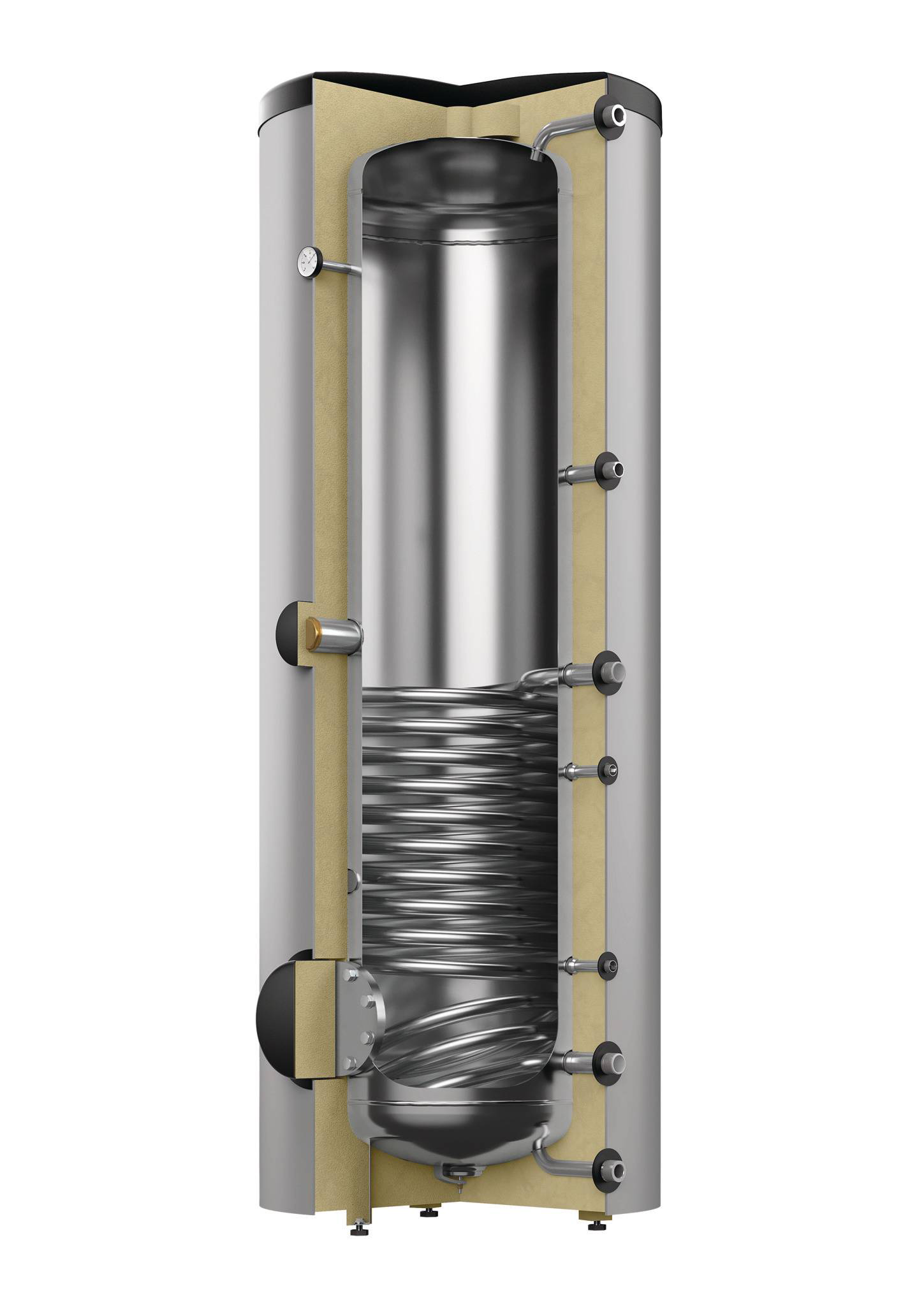 Storatherm Aqua Inox AI 500/1M_B, roostevabast terasest joogivee akupaak, millel on fooliumkate, PUR-vahuga, hõbedane, 10 bar